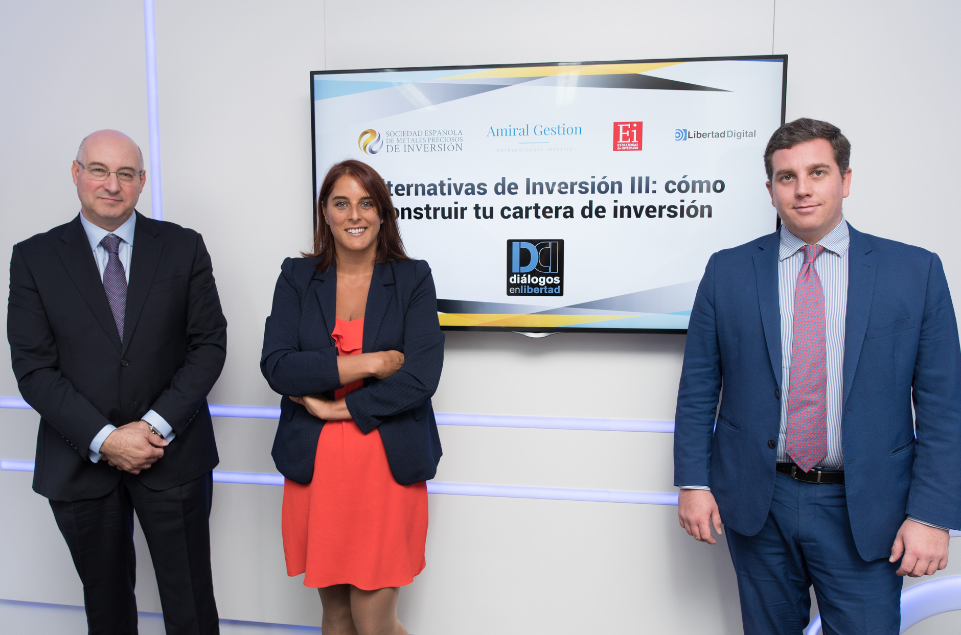Gabriel Ruiz, de Sociedad Española de Metales Preciosos de Inversión, Pablo Martínez Bernal de la gestora de fondos Amiral Gestion y Silvia Morcillo, directora de Estrategias de Inversión.