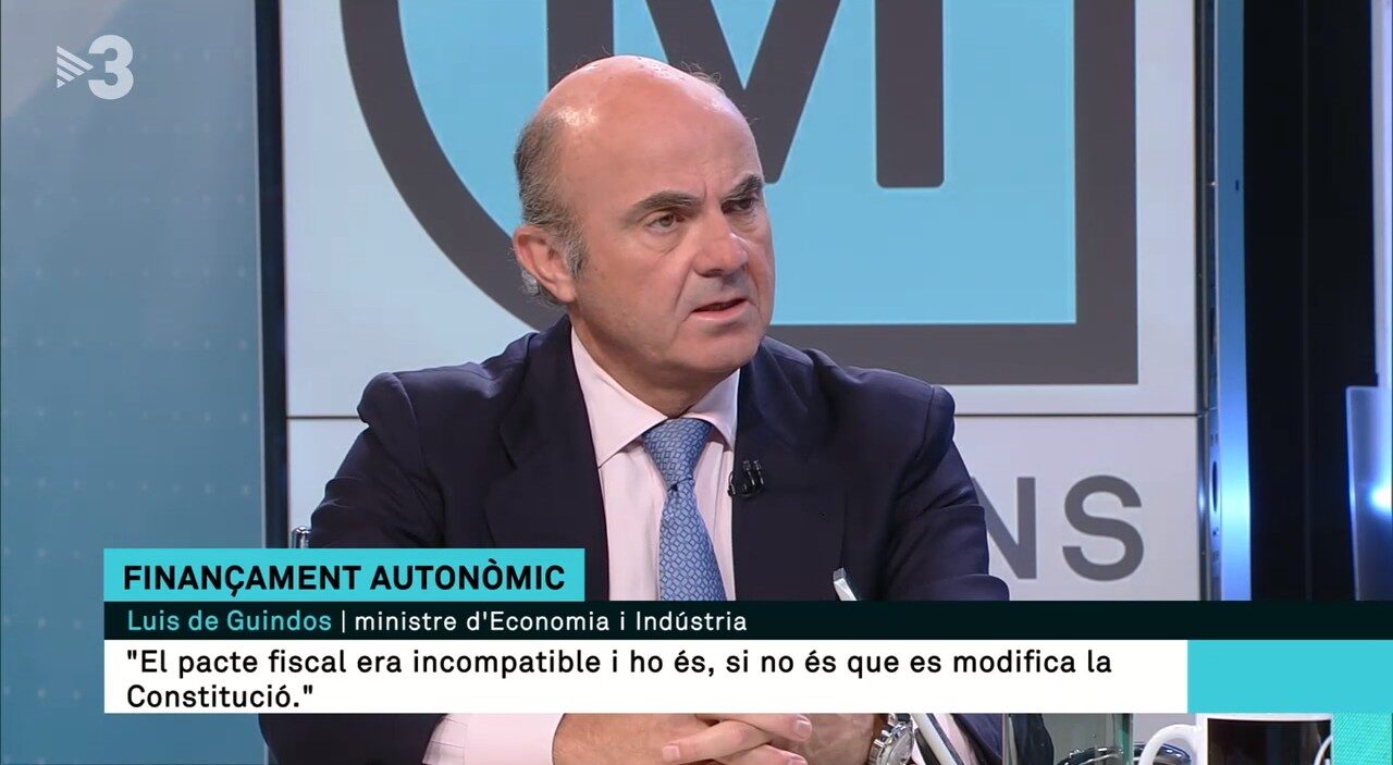Todo empezó este jueves, cuando Luis de Guindos visitó TV3 para una entrevista con Lídia Heredia en el programa Els Matin. El contenido de la charla fue el previsible: si el Gobierno español había actuado bien en estos años, si ha faltado diálogo, si la intervención de Hacienda a los gastos de la Generalidad estaba justificada, si el referéndum puede o no celebrarse... Pero siendo el ministro de Economía, la conversación giró hacia temas más económicos y menos políticos que en otras ocasiones.
