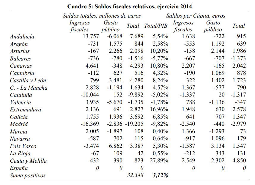 Eso sí, hay que aclarar de nuevo que esto ni es un expolio ni un robo. De hecho, las balanzas fiscales dentro de Cataluña (lo que aportan y reciben de la Generalidad las cuatro provincias) dan un saldo negativo a Barcelona superior al de Cataluña respecto al resto de España. Siempre hay que tener en cuenta que las balanzas fiscales son un instrumento muy dado a la manipulación, en el que no existe un criterio único para imputar ingresos y gastos, que ningún otro país publica y que, si se calculan bien para el caso español, simplemente muestran que en las regiones de régimen común se cumple el principio fiscal básico de todos los países occidentales: los ricos pagan impuestos más elevados porque el sistema fiscal es progresivo.