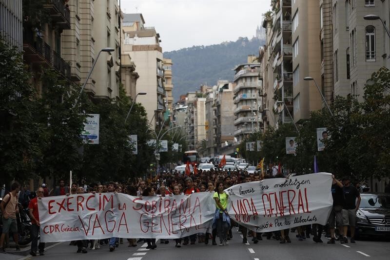 La huelga general y el "paro de país" convocados en Cataluña están teniendo un seguimiento desigual, en función del sector, y han estado marcados por los cortes de carreteras, que han colapsado la red viaria, y las múltiples concentraciones en las calles.