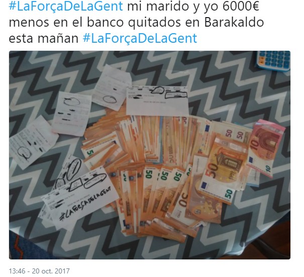 #LaForçaDeLaGent mi marido y yo 6000€ menos en el banco quitados en Barakaldo esta mañan #LaForçaDeLaGent pic.twitter.com/25t2KcUrog