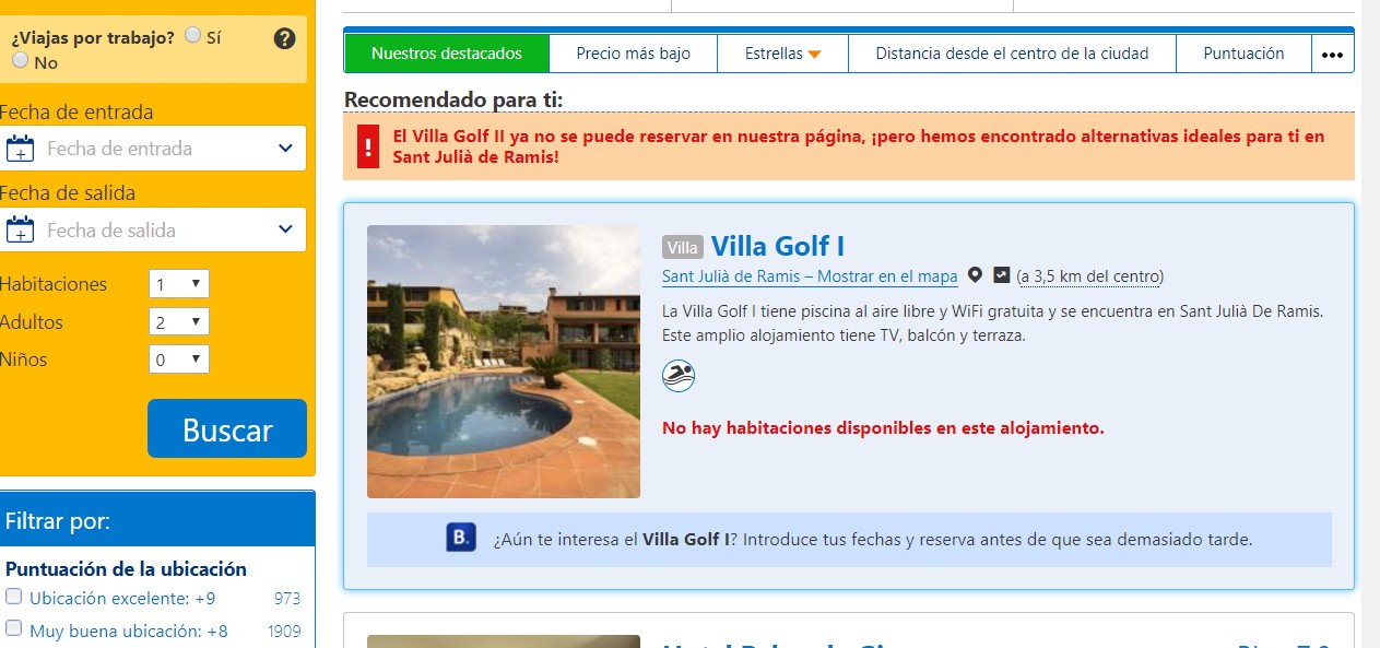 Booking confirma que la vivienda del presidente de la Generalidad, bautizada como Villa Golf II, ya no se encuentra anunciada en su portal