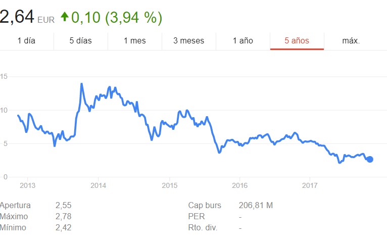 Otro dato que muestra la debacle de Prisa, es su desplome bursátil. Mientras que Cebrián llegó a la presidencia de un grupo cuyos títulos cotizaban en torno a los 10 euros por acción, a cierre de ayer las acciones estaban en los 2,64 euros, una caída superior al 70%.