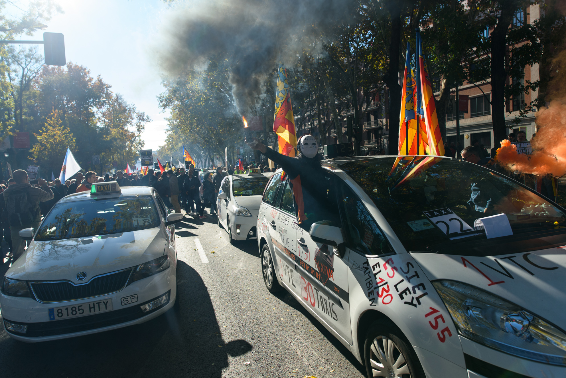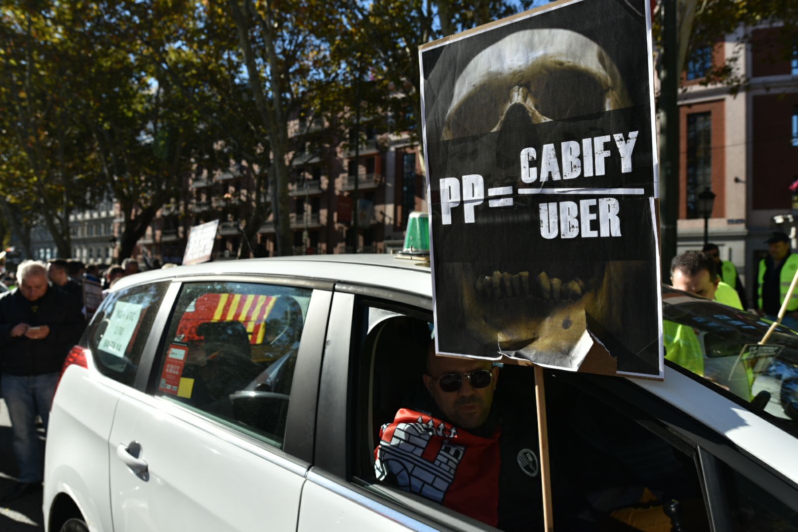 Una multitudinaria manifestación de taxistas provenientes de toda España ha arrancado a las 11:30 horas para reivindicar que se articulen medidas contra las plataformas de vehículos de alquiler con conductor (VTC), como Uber y Cabify, a las que acusan de competencia desleal.