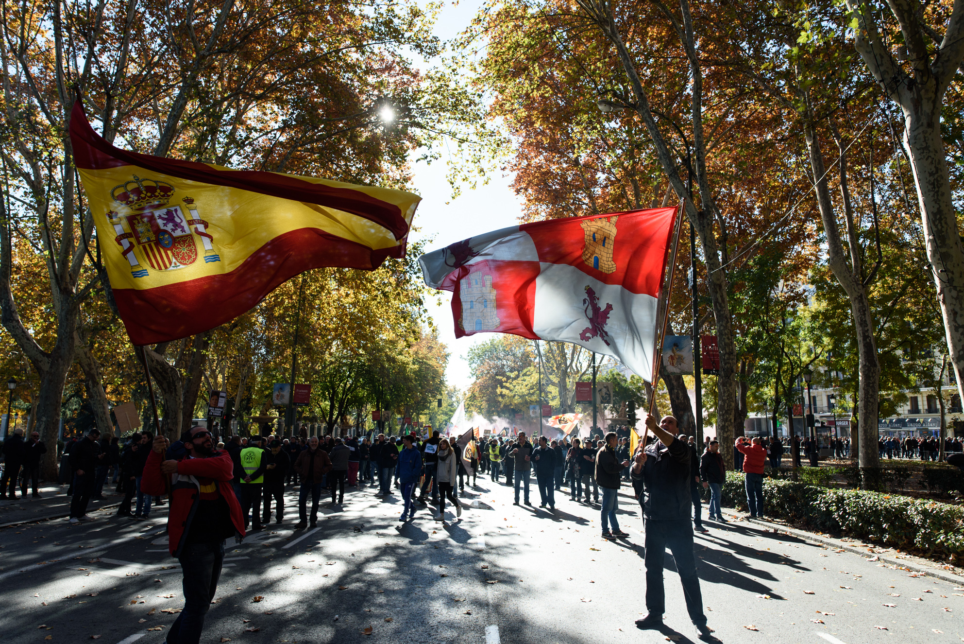 Banderas de todas las comunidades autónomas presentes en la manifestación y varias de España.