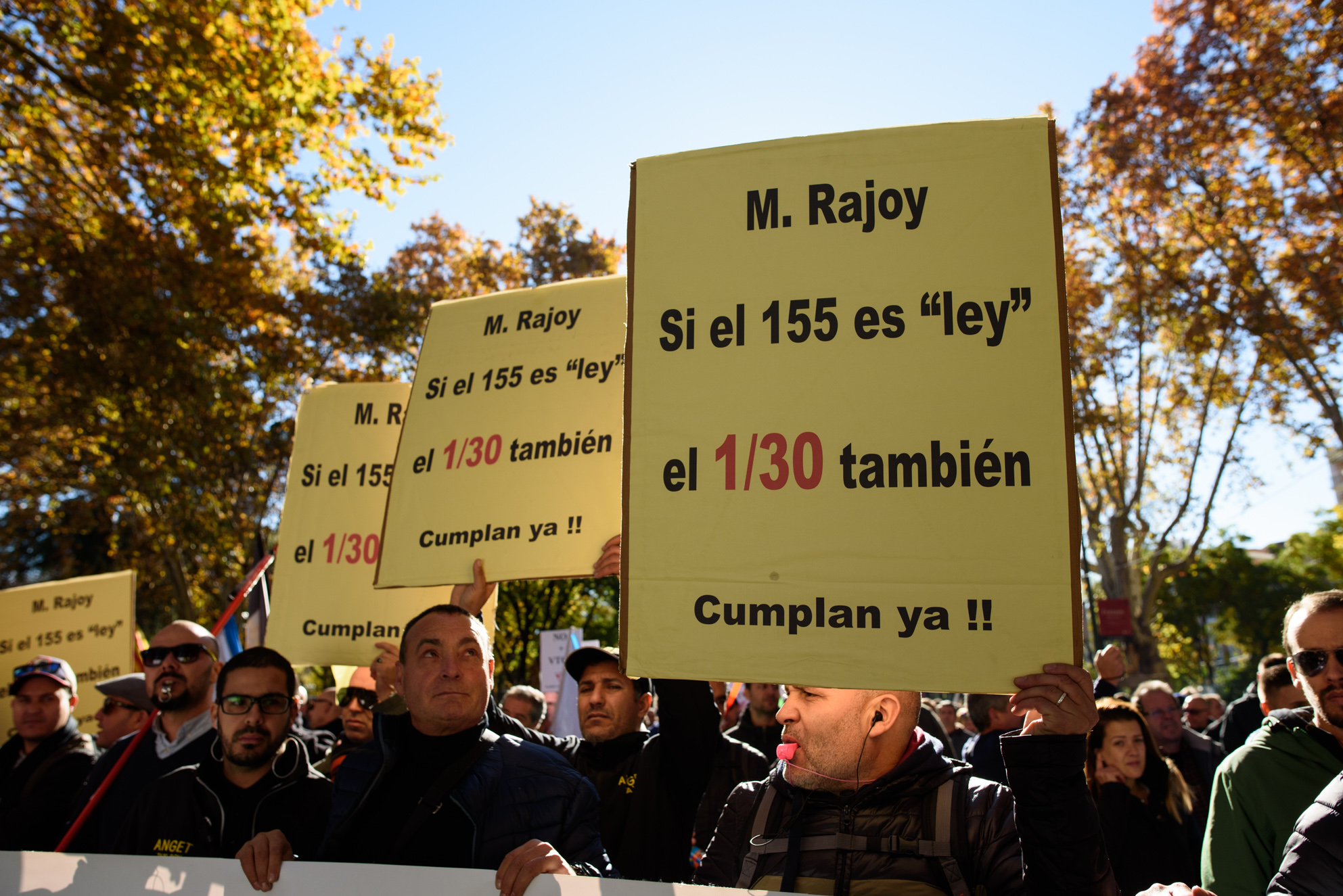 Pancartas reivindicativas como esta que reza \"M.Rajoy, si el 155 es \"ley\" el 1/30 también. Cumplan ya!!\".