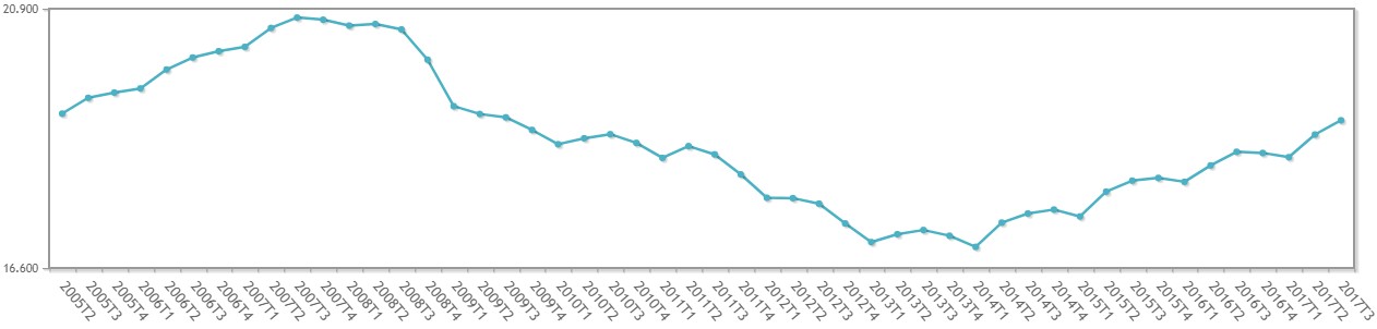 En concreto, la economía española alcanzó en el segundo trimestre de 2017 el nivel de PIB existente a mediados de 2008, nueve años después de que estallase la crisis financiera internacional más grave desde el crack del 29. Desde ese momento y hasta el tercer trimestre de 2013, la riqueza nacional se contrajo un 9,6%, un terreno perdido que, posteriormente, tardó casi cuatro años en recuperarse.