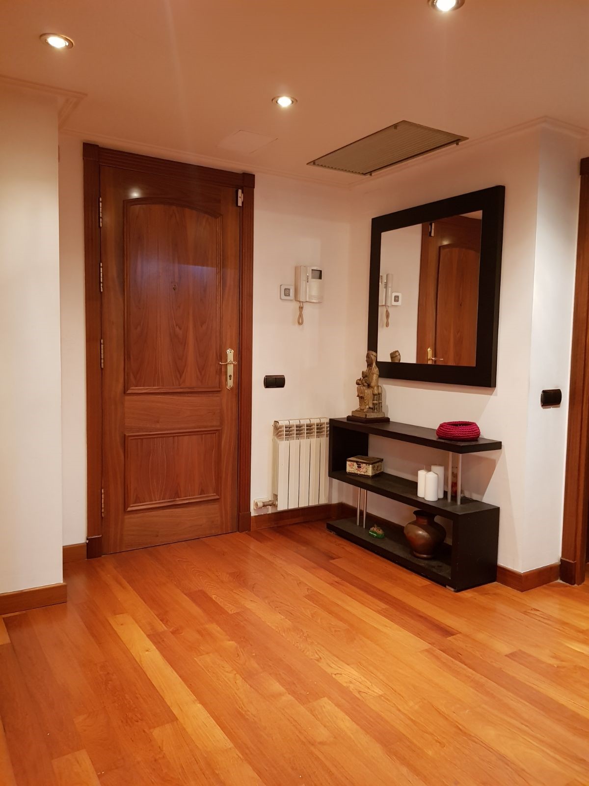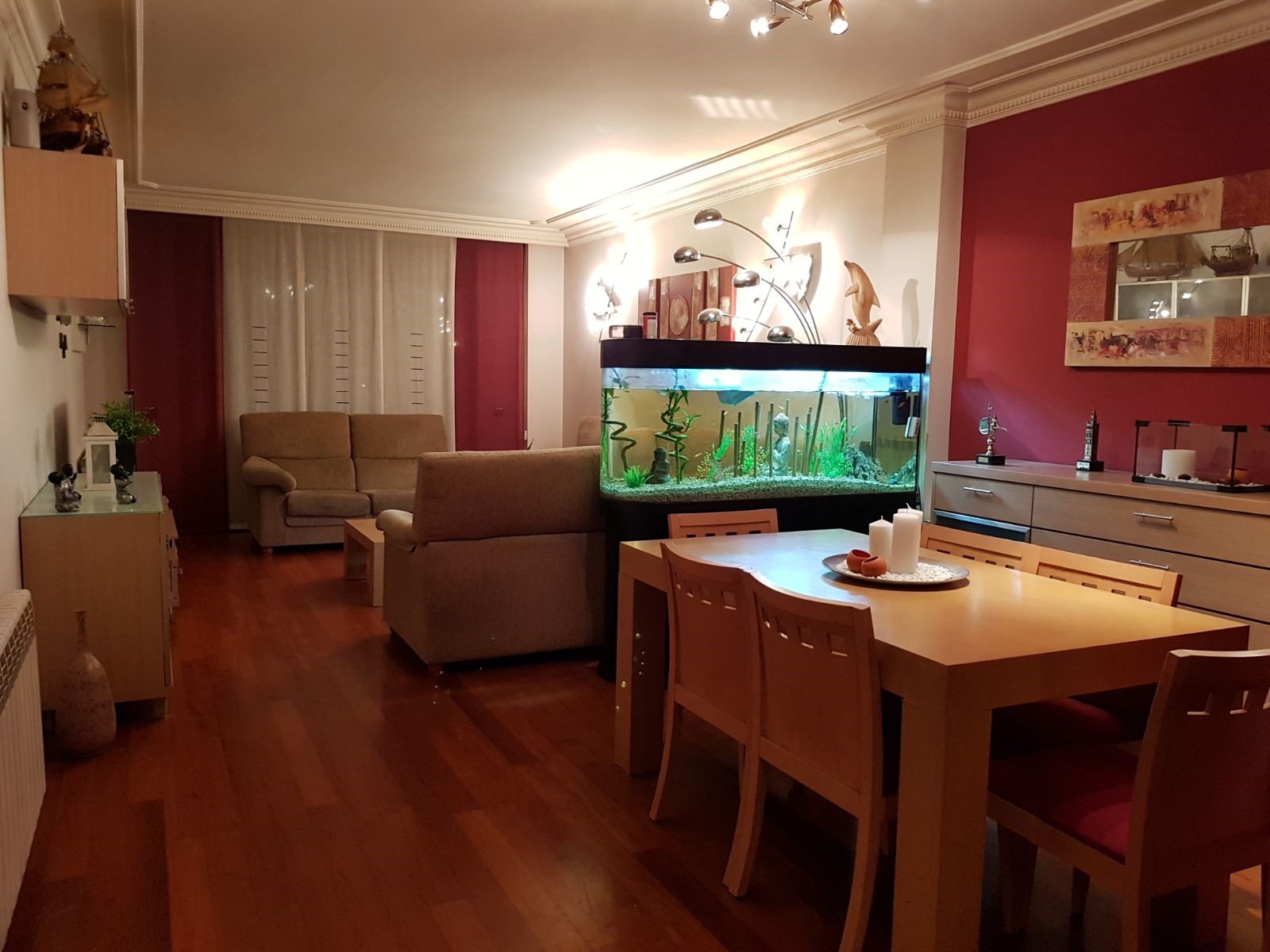 Tiene un salón comedor de unos 32 metros cuadrados y parquet de teka en toda la vivienda, a excepción de los baños y la cocina