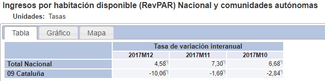 Y, por último, los ingresos por habitación disponible (RevPAR) se hundieron más de un 10% en los hoteles catalanes al cierre del pasado año, frente a la ganancia del 4,6% que registró el sector en el resto de España. El procés, al menos en el último trimestre de 2017, ha supuesto un mal negocio para la industria hotelera catalana.