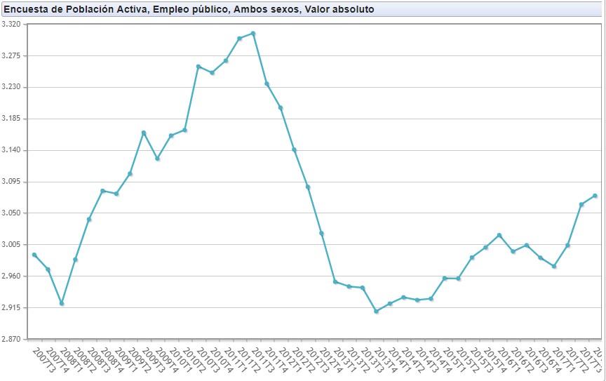 Además, a partir de ese momento, la contratación pública aumentó en 165.000 personas, de modo que, hoy por hoy, el sector público cuenta con 84.400 empleados más que antes de la crisis.