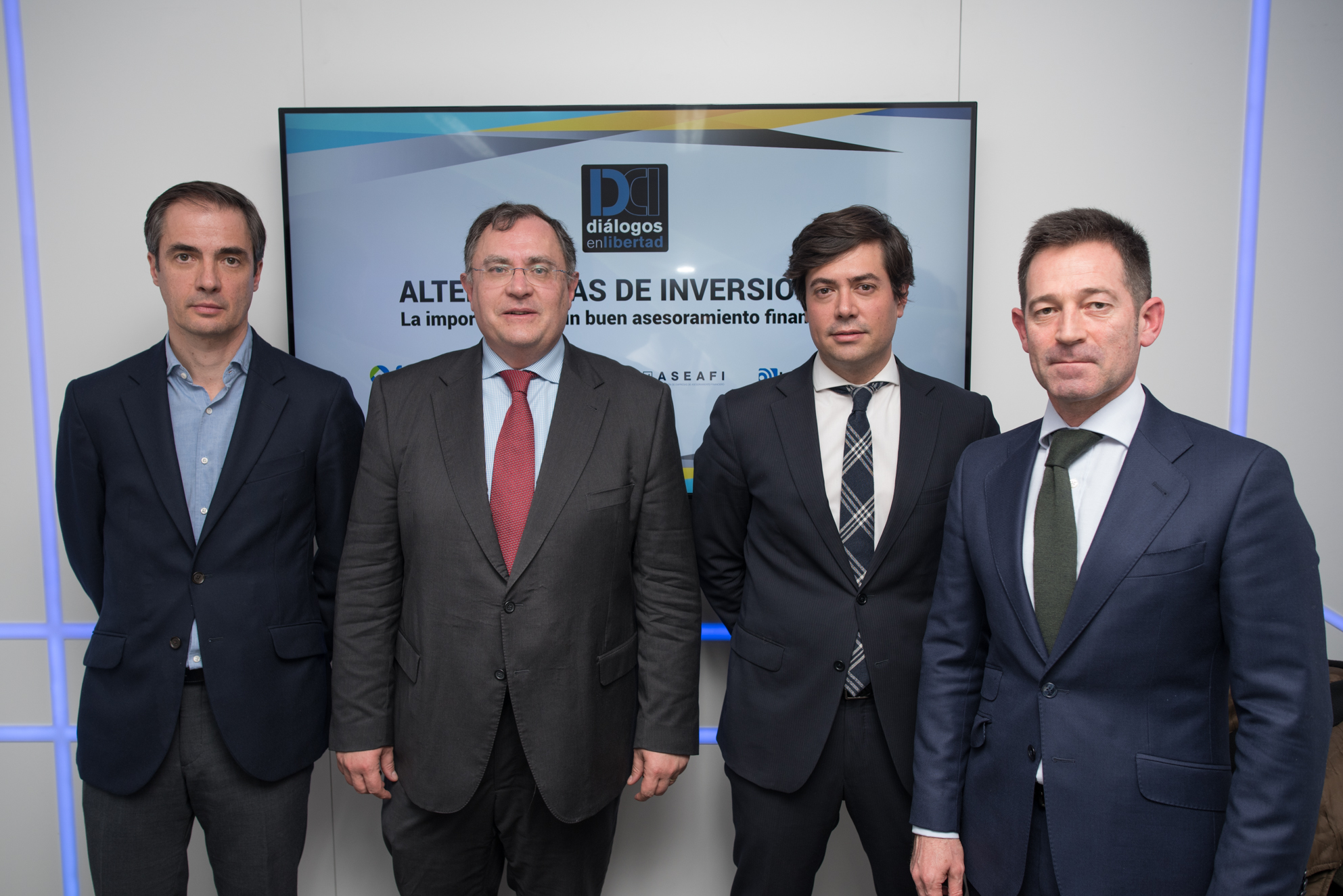 Asier Uribeechebarría, de Finanbest, Ramón Alfonso, de GAR Investment Advisors EAFIy Carlos García Ciriza de ASEAFI, acompañados por Luis F. Quintero, de Libertad Digital, que ha conducido el coloquio