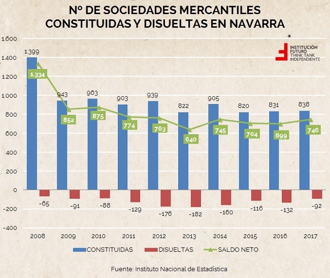 Las reformas fiscales navarras están frenando el crecimiento de la región. Hasta tal punto que, en los años más duros de la crisis –desde 2009 a 2012– se crearon más empresas en la región que actualmente. En dichos años, se superaron las 900 sociedades mercantiles creadas y el balance entre las nuevas y las disueltas era más positivo que el que se registra en la actualidad. En 2011, el balance reflejó un resultado positivo de 774 compañías creadas. Mientras que en 2016 se quedó en 699 y en 2017 en 746.