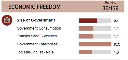 En la parte negativa está la libertad económica. De hecho, España suspende en el tamaño del Gobierno -considerado excesivo-, en el alto número de subsidios y subvenciones y en la elevada tasa de impuestos, así como en materia de intervencionismo regulatorio. Todos estos parámetros son considerados como excesivos y, por ello, la puntuación es muy baja.