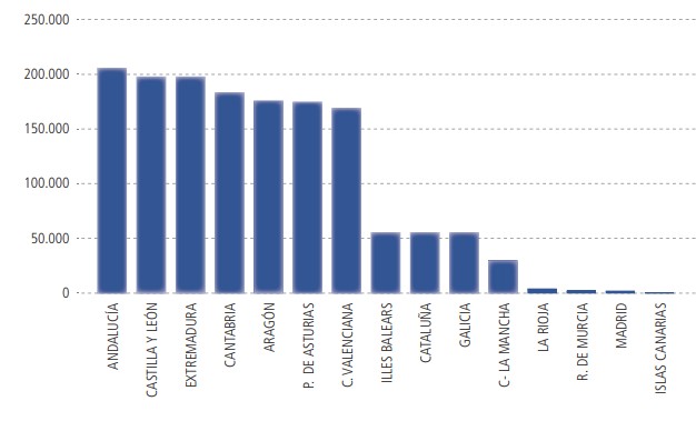 En Donaciones, por el contrario, Andalucía se sitúa a la cabeza, con más de 208.000 euros en impuestos sobre un total de 800.000 euros en efectivo, frente a los 200 euros que cobra Canarias o los 2.000 de Madrid y Murcia.