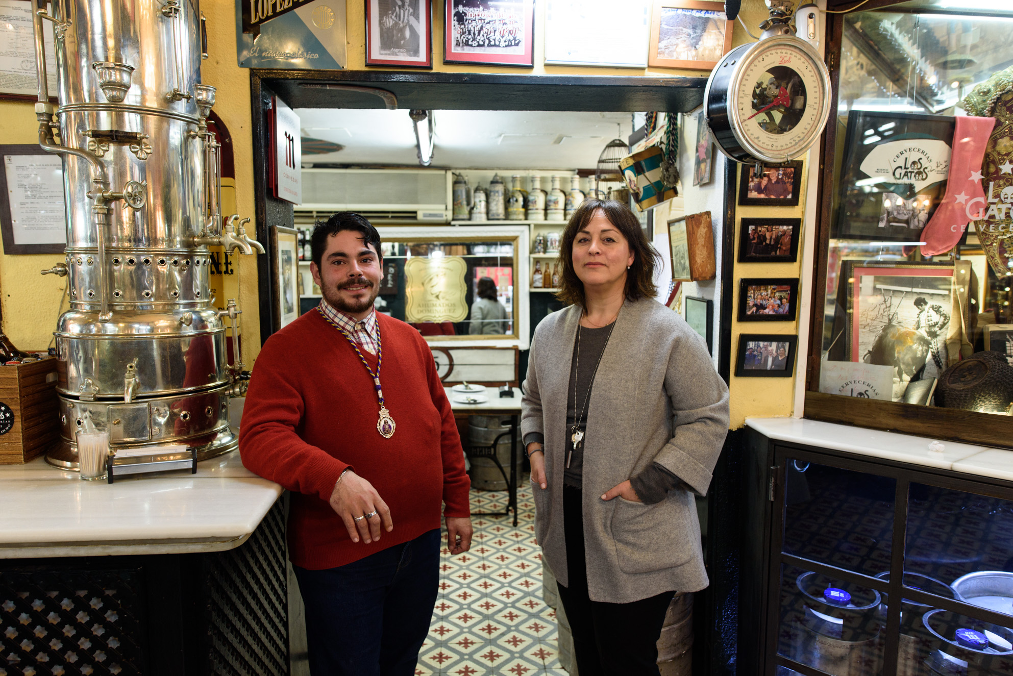 Christian y la dueña del bar Los Gatos, en la calle de Jesús, a pocos metros de la Basílica de Jesús de Medinaceli.