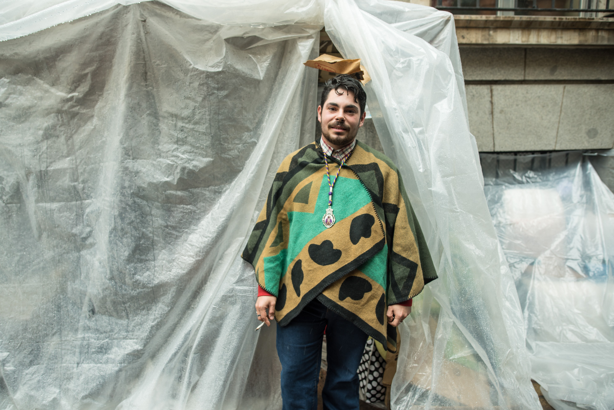 Cristian, uno de los primeros en la cola, minutos después de despertarse. Ha pasado la noche en el interior de la tienda improvisada que lo ha protegido de las inclemencias del tiempo y el frío.