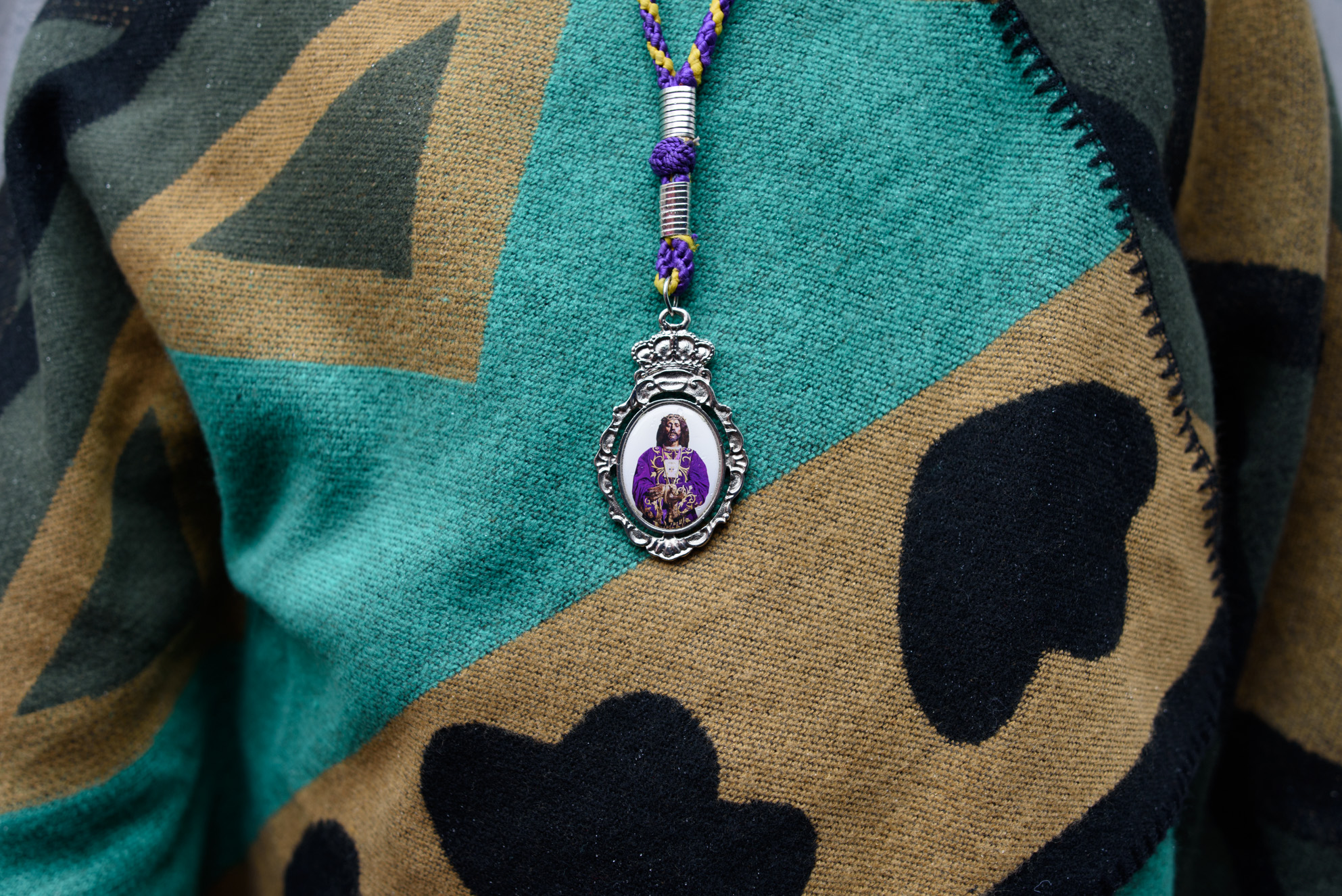 Un detalle del colgante con la imagen del Cristo de Medinaceli.