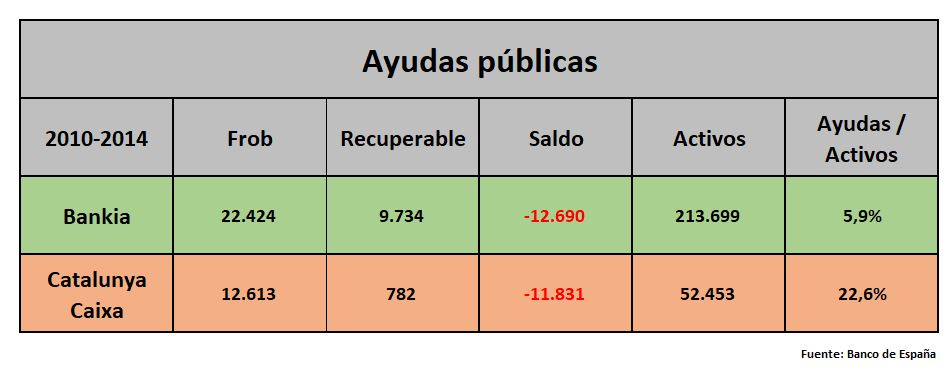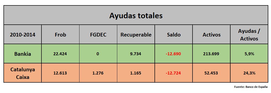 - Si contamos todas las ayudas, del Frob y del Fondo de Garantía de Depósitos, Catalunya Caixa ya está por delante de Bankia como entidad que más dinero ha recibido (y perdido) en términos absolutos. Sólo si quitamos la parte del FGDEC, Bankia gana (por poco) esta competición.