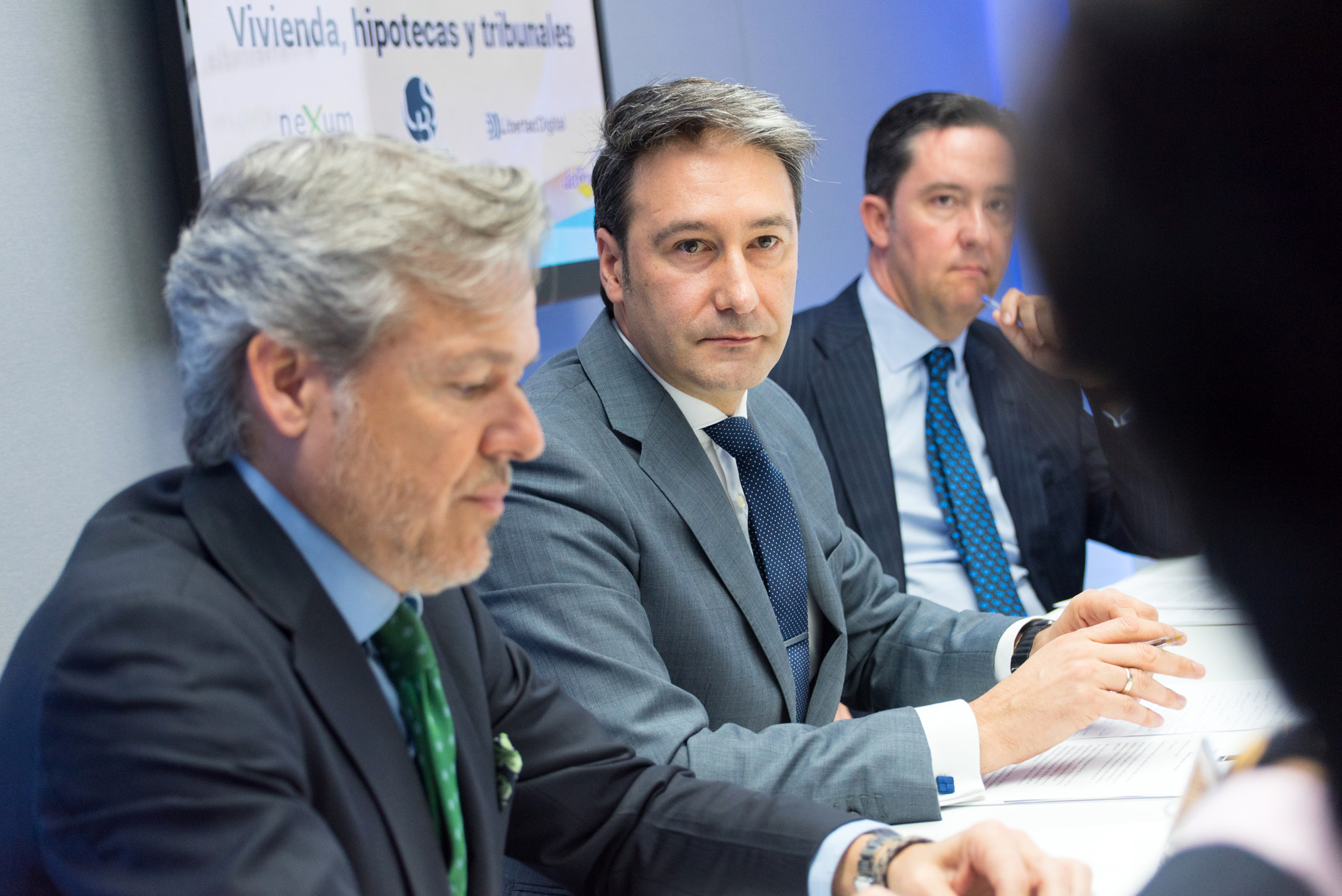 José Luis Ruiz Bartolomé, autor de Adiós, ladrillo, adiós y Vuelve, ladrillo, vuelve, junto a Carlos Antón, socio de Nexum Legal y experto en derecho hipotecario, y Alberto Leonardo, socio de LBS Abogados y experto en derecho inmobiliario y de construcción