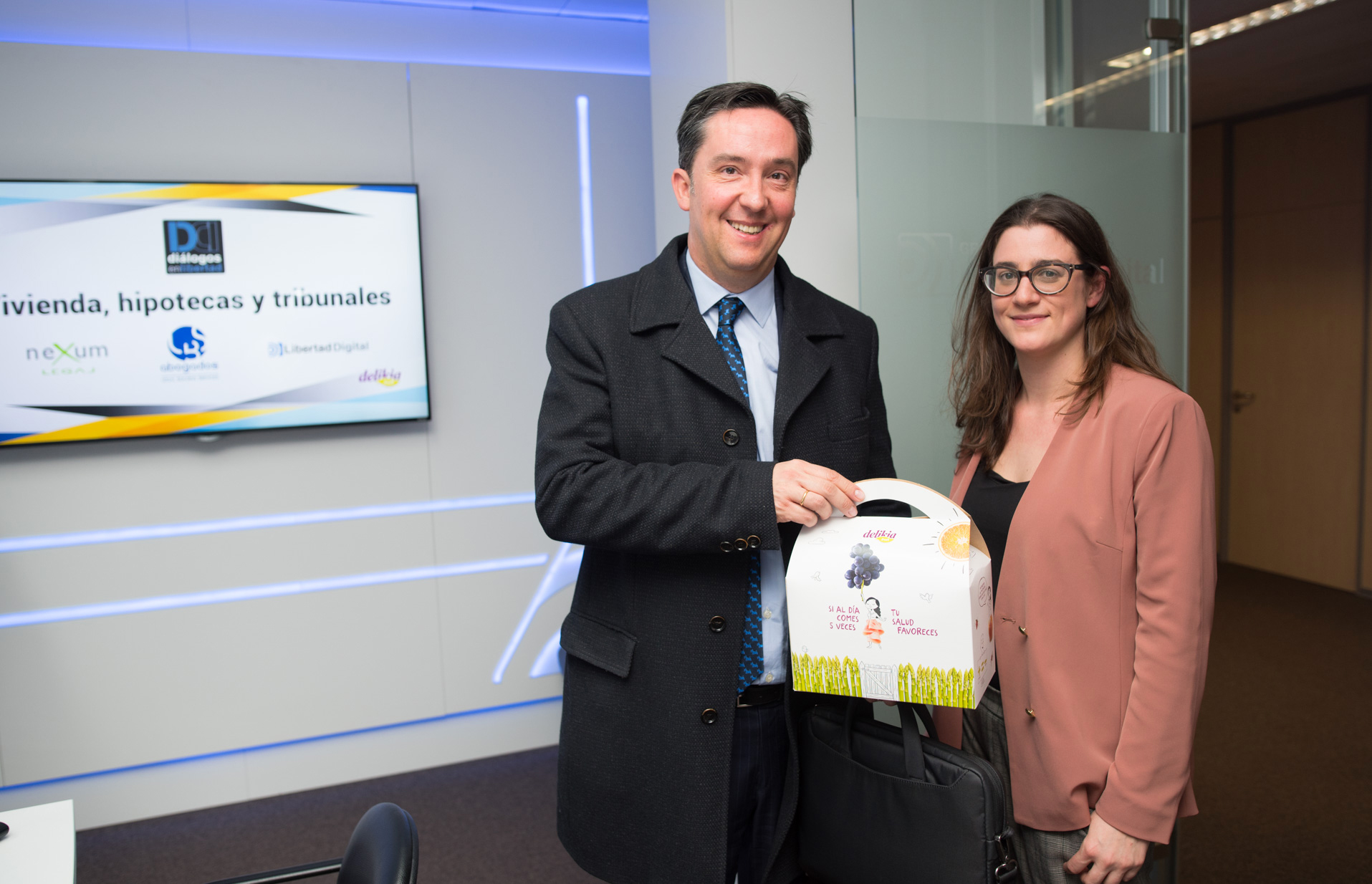 Patricia, de Delikia Fresh, obsequió a los ponentes Alberto Leonardo de LBS Abogados y Carlos Antón Mérida de Nexum Legal con la campaña de cinco comidas de Delikia.