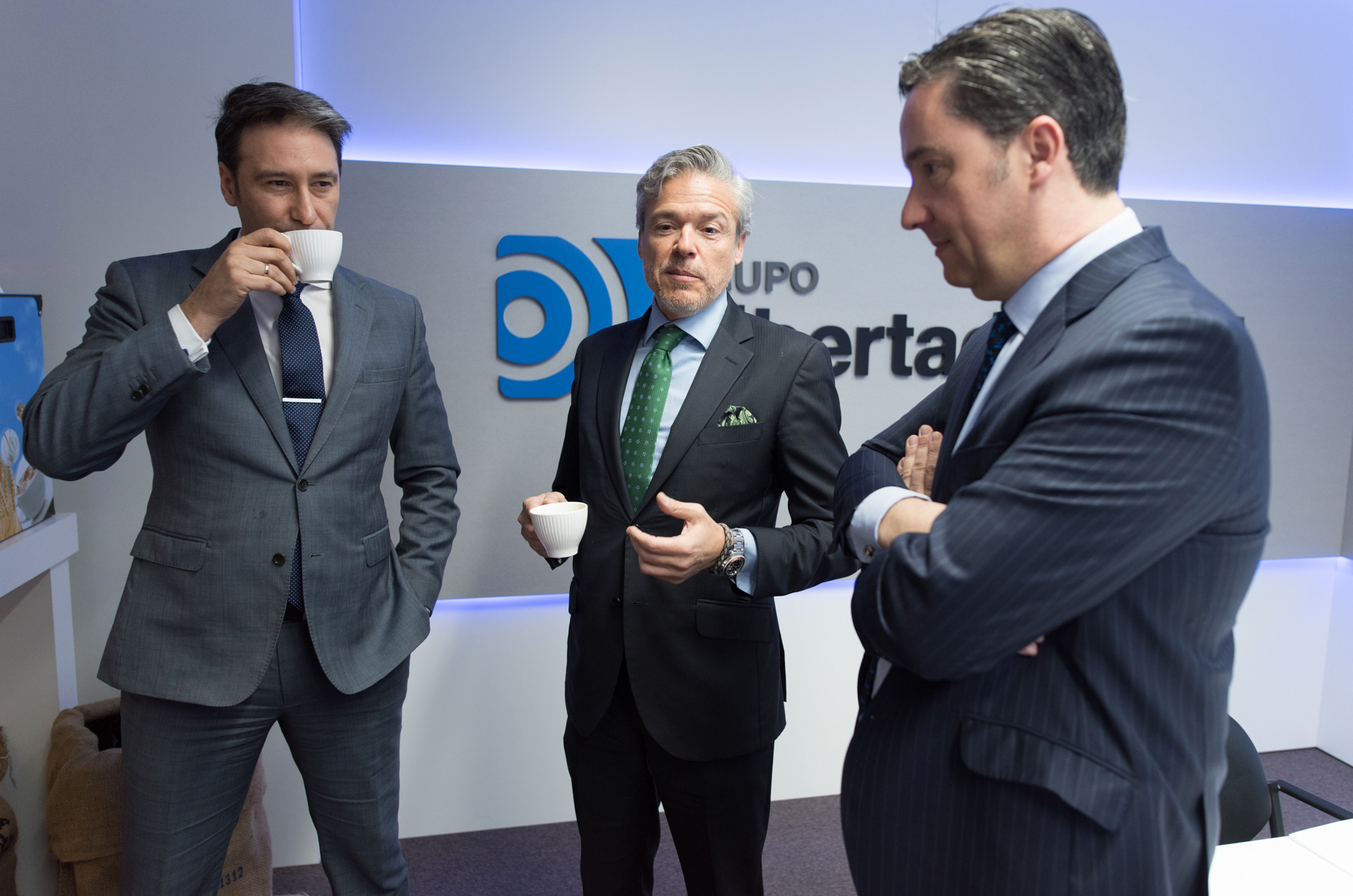 Alberto Leonardo Zorrilla, socio de LBS Abogados (i), Carlos Antón Mérida, socio de Nexum Legal (c) y José Luis Ruiz Bartolomé analista experto en el mercado inmobiliario (d) toman un café cortesía de Delikia, minutos antes de empezar el desayuno informativo sobre el mercado inmobiliario.