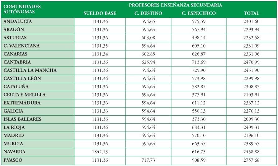 Los profesores de Secundaria, por su parte, presentan divergencias de hasta 650 euros al mes, sin tener en cuenta, igualmente, el plus de antigüedad.