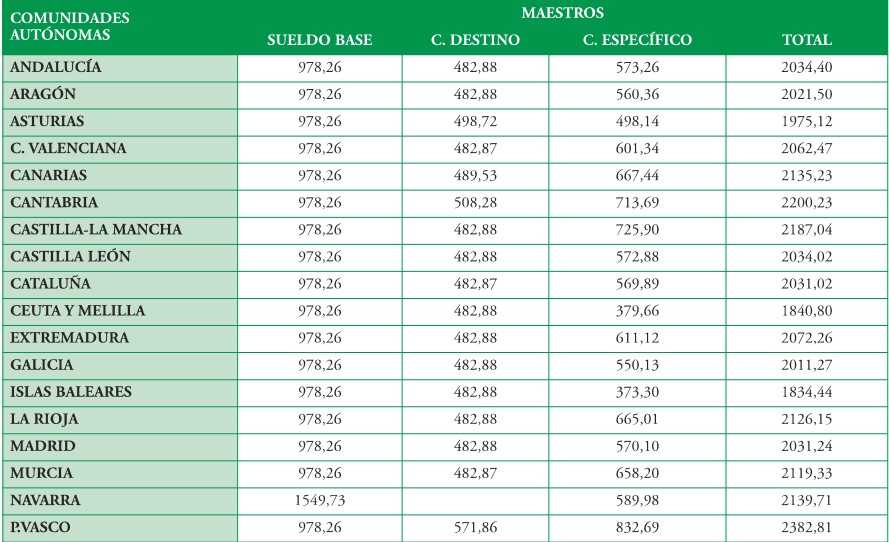 En cuanto al colectivo de profesores, la diferencia máxima entre los maestros de Primaria es de 550 euros al mes en 2018, sin contar el plus de antigüedad, según datos del sindicato ANPE.