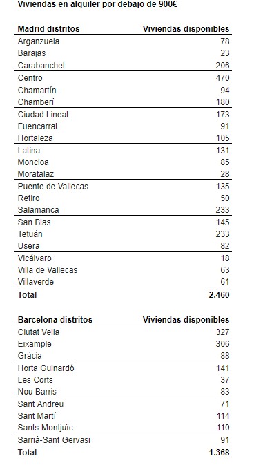 Además, en mercados como Madrid o Barcelona encontrar alquileres por debajo de los 900 euros no es tarea fácil. A pesar de que pueda parecer una cantidad elevada, la ayuda sólo afectará al 25% de todas las viviendas que se ofertan en la actualidad en Madrid y al 15% de las que lo hacen en Barcelona, según Idealista. Se trata de 2.684 viviendas en la capital y de 1.368 en la Ciudad Condal.