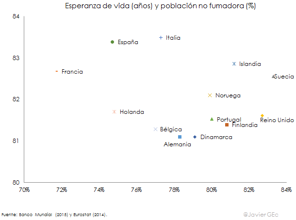 En cambio, la proporción de la población que no fuma es relativamente baja en España, al suponer cerca de un 74%, casi 10 puntos menos que suecos o británicos.