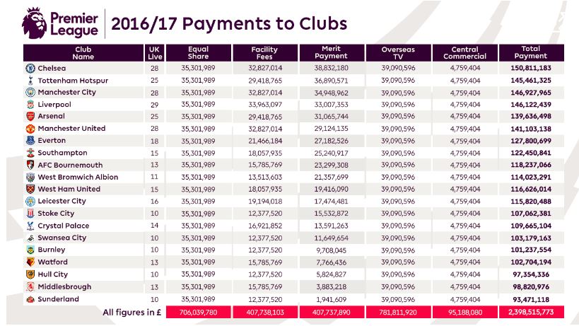 Cada año, cuando llegan las noticias sobre la venta de derechos televisivos resurge el debate. ¿Por qué los clubes ingleses reciben de sus patrocinadores y de las cadenas cifras mucho más elevadas que las del resto de campeonatos europeos? ¿Qué está haciendo la Premier que los demás no consiguen replicar? ¿De verdad pagan tanto los chinos por ver un Everton – Stoke City que eso explica que entre los veinte equipos más ricos del mundo haya 10 ingleses?