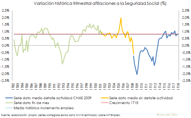 Con estos datos, el primer trimestre arrojaría un crecimiento económico del 0,8%, tasa similar a la de finales de 2017 y en línea con el histórico registrado en trimestres previos.