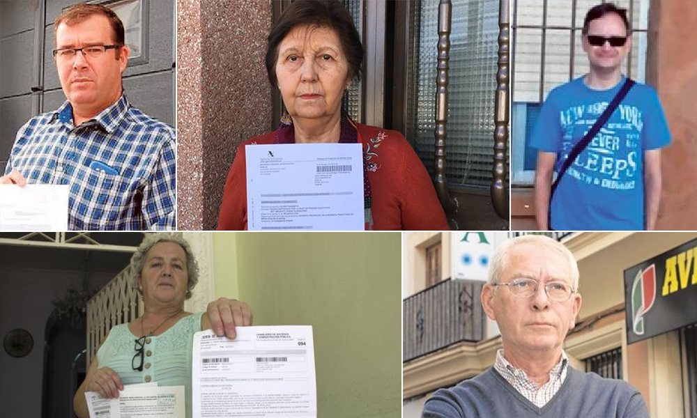 5- Maribel Pires:dos generaciones de agricultores "trabajando de sol a sol" para tener una vivienda de autoconstruccion del año 1936, donde vive la afectada con su hijo de 6 años, y otra del año 1960, donde vive su madre con un hermano con discapacidad, junto con "un trozo de tierra de cultivo como medio de vida familiar". La Junta de Andalucía tiene embargados sus bienes y le pide 300.000 euros tras morir su padre.