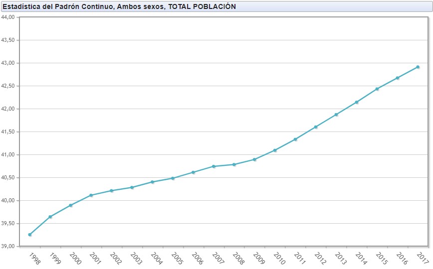 Según el avance provisional del Padrón publicado el pasado martes, España contaba con un total de 46.698.569 habitantes a 1 de enero de 2018, lo que supone un incremento de 126.437 personas en el último año, un 0,3% más. Se trata de un punto inflexión. Desde 1998, cuando comienza a publicarse esta estadística, la población empadronada no dejó de crecer hasta 2012, momento a partir del cual empezó a disminuir hasta 2016, donde repuntó ligeramente. En 2017, el volumen de habitantes vuelve a aumentar por segundo año consecutivo, pero de forma más significativa.