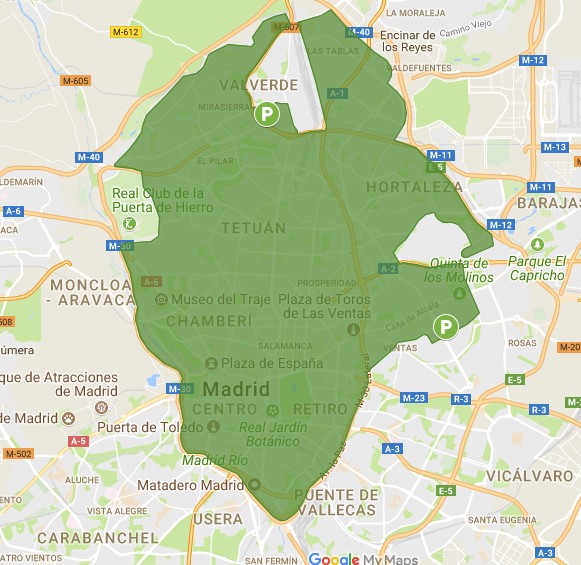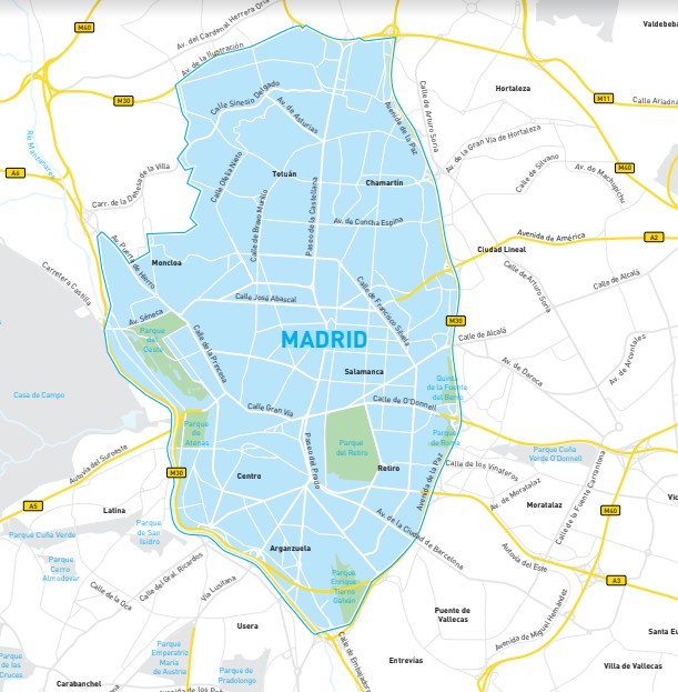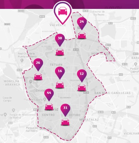 Es la más limitada de las tres empresas de carsharing. Solo permite aparcar dentro de casi toda la M-30
