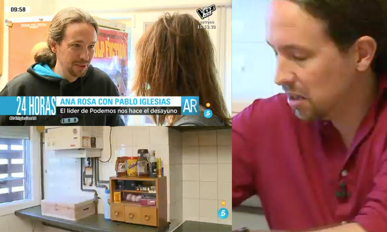 Entonces, Pablo Iglesias derrochaba austeridad por los cuatro costados. Le hizo a su invitada unas apetitosas tostadas de Salmorejo "de bote" y jamón de sobre. Ahora, su casa tiene entrada propia para el servicio.