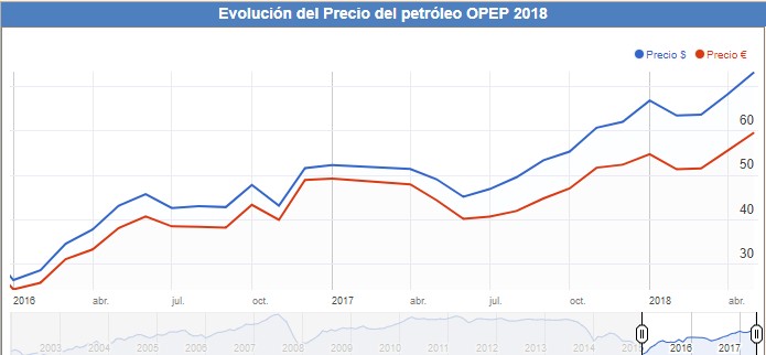Por un lado, el petróleo ronda hoy los 80 dólares por barril, lo que supone un 20% más que lo estimado en los cálculos presupuestarios del Ejecutivo. La inestabilidad existente en Oriente Medio, los recortes de producción acordados por la OPEP y la reciente ruptura del pacto nuclear con Irán por parte de EEUU han impactado al alza en el precio.
