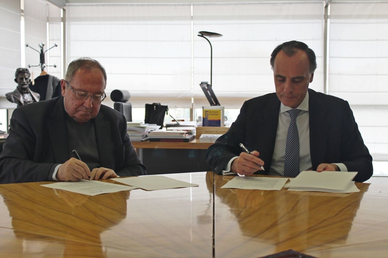 El director territorial de Madrid de CaixaBank, Juan Gandarias, y el presidente de la Cámara de Comercio de España, José Luis Bonet, han firmado un acuerdo de colaboración que permitirá mejorar la financiación de las cámaras territoriales para la ejecución de sus proyectos tanto nacionales como en el ámbito de la Comisión Europea.