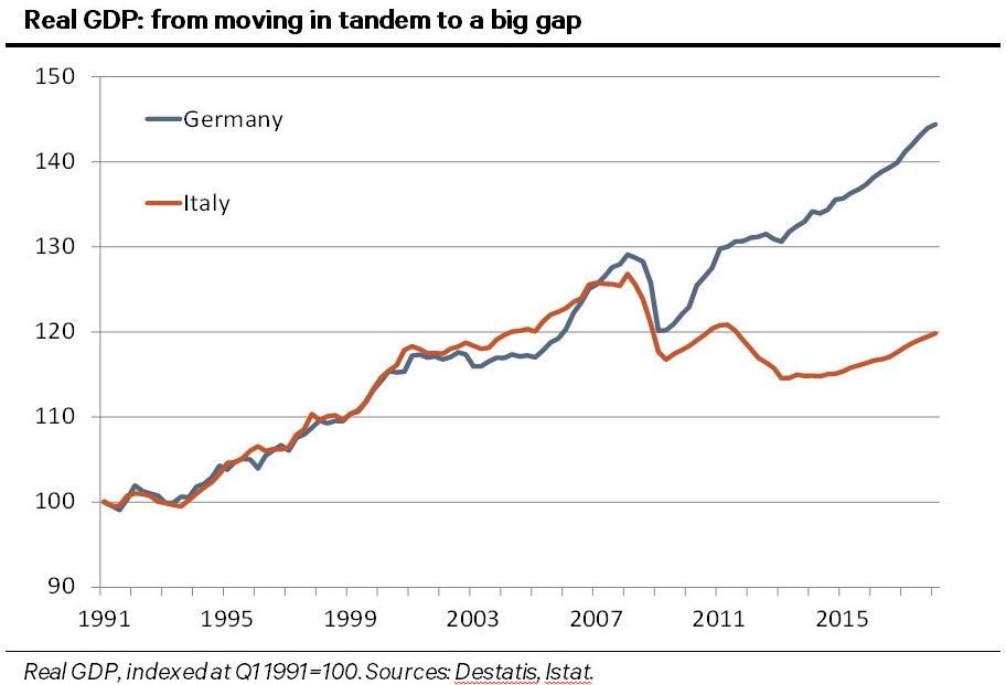 En primer lugar, porque su desempeño económico dentro de la moneda única ha sido mediocre debido a su baja productividad, su elevada deuda pública y la escasez de reformas estructurales.