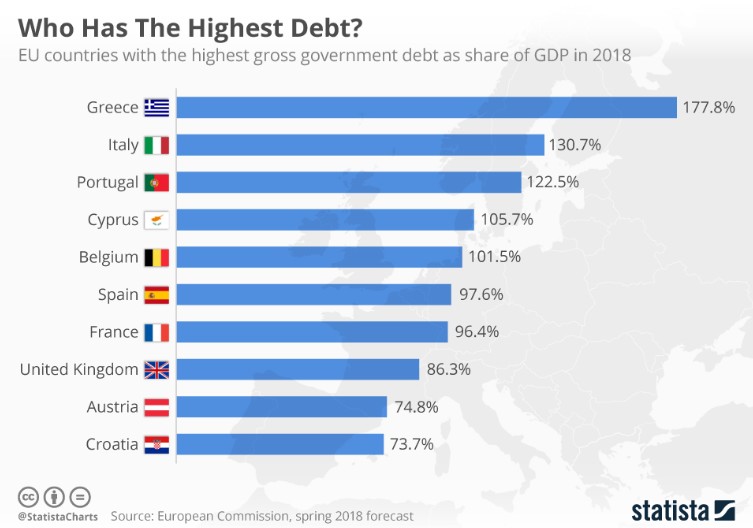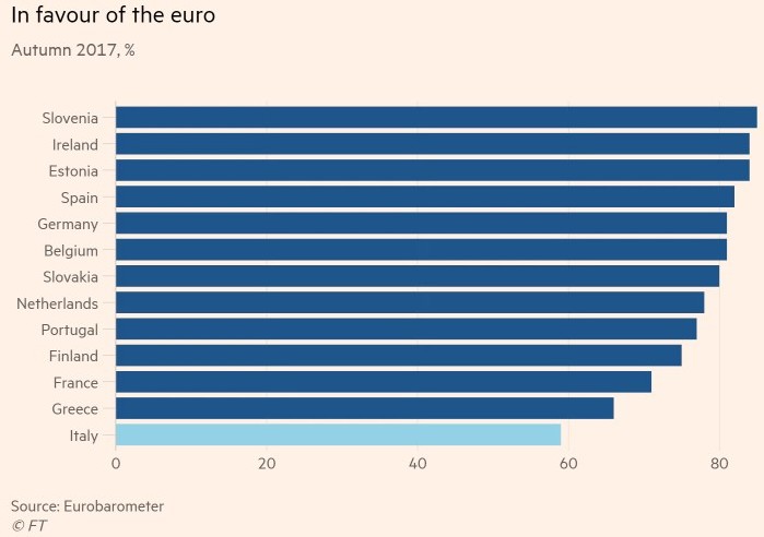 Italia, con una deuda del 130% del PIB, es el país más endeudado del euro tras Grecia, justo por delante de Portugal. Un programa de gobierno tendente a disparar el déficit generaría turbulencias ante el elevado coste de la deuda, pero si el debate político se traslada a la permanencia de Italia en el euro, la crisis desatada en su día por Grecia podría regresar con toda crudeza al seno de la Unión.