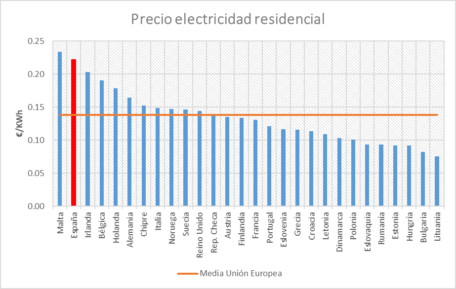 A pesar de los problemas de las renovables que estamos comentando y del enorme coste que tenía la generación solar y eólica, los políticos españoles decidieron que 2004 era un buen momento para iniciar el camino hacia las renovables. Esto, evidentemente, provocó muy rápido que el precio de la factura eléctrica subiera exponencialmente. Javier Sevillano explica de forma magistral el problema de las primas a renovables aquí. Actualmente, tenemos el segundo precio más caro de la electricidad en Europa para hogares (sólo por detrás de Malta) y el tercero para otros usuarios (industria y comercio).