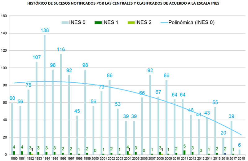 En el caso español, las centrales nucleares están bien gestionadas y conservadas, por lo que con una inversión extra no demasiado elevada podrían seguir funcionando sin muchos problemas. De hecho, es interesante ver cómo no ha habido ni un solo accidente en la historia nuclear española -apenas un incidente importante y sin víctimas mortales-, mientras que los sucesos que se catalogan como anomalías caen año tras año como podemos ver en el gráfico proporcionado por el Consejo de Seguridad Nuclear (INES 0 y 1 son anomalías e INES 2 incidente. Desde el año 1990 sólo ha habido 3 incidentes).