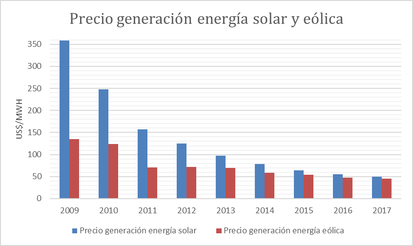 El problema fue que España invirtió enormes cantidades en la instalación de centrales solares y eólicas cuando todavía eran muy poco eficientes y esto ha generado múltiples problemas en el sector eléctrico español (primas desorbitadas a renovables, déficit tarifa, acumulación de deuda del sistema eléctrico,…). Así, podemos ver que, para el año 2017, el coste tanto de la solar como de la eólica es el más bajo entre varias tecnologías de generación.