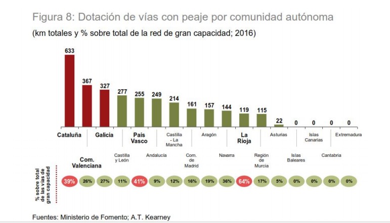 Según ha explicado, en nuestro país, sólo el 18% de las carreteras están tarificadas.Cataluña es la región que más peajes tiene colocados en sus vías, y Núñez también ha criticado esta desigualdad territorial" que genera "debate entre los ciudadanos". En el siguiente cuadro puede verde el ranking de CCAA con más kilómetros de peaje.