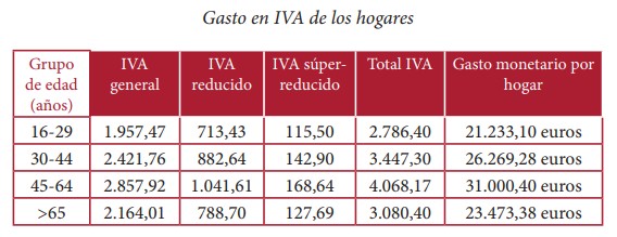 Asimismo, por hogares, el pago de IVA se traduce en un desembolso anual de entre 2.786 y 4.068 euros, según la edad de los miembros que sustentan la familia.