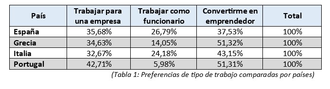Aunque España ocupe la última posición entre los países del sur de Europa en el afán de emprender de los jóvenes, esta opción es la más deseada por el 37,53% de los estudiantes españoles, frente a trabajar para una empresa del sector privado (35,68%) o ser funcionarios (26,79%).