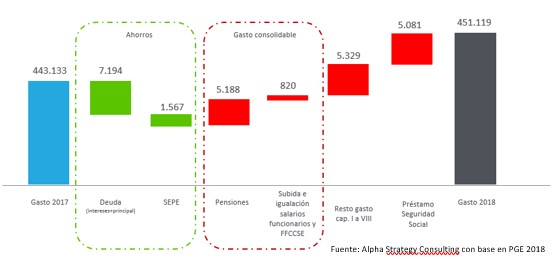 ¿Qué pasará entonces? Que partidas tan sociales como el restablecimiento de la sanidad universal, la eliminación del copago farmacéutico, la nacionalización de las autopistas de peaje, y las que quedan por venir, sencillamente, serán una amenaza financiera para el sistema en su conjunto. Añadir 4.500 millones de euros (al menos) a un presupuesto como el de 2018, claramente expansivo, es un acto de irresponsabilidad política y social.