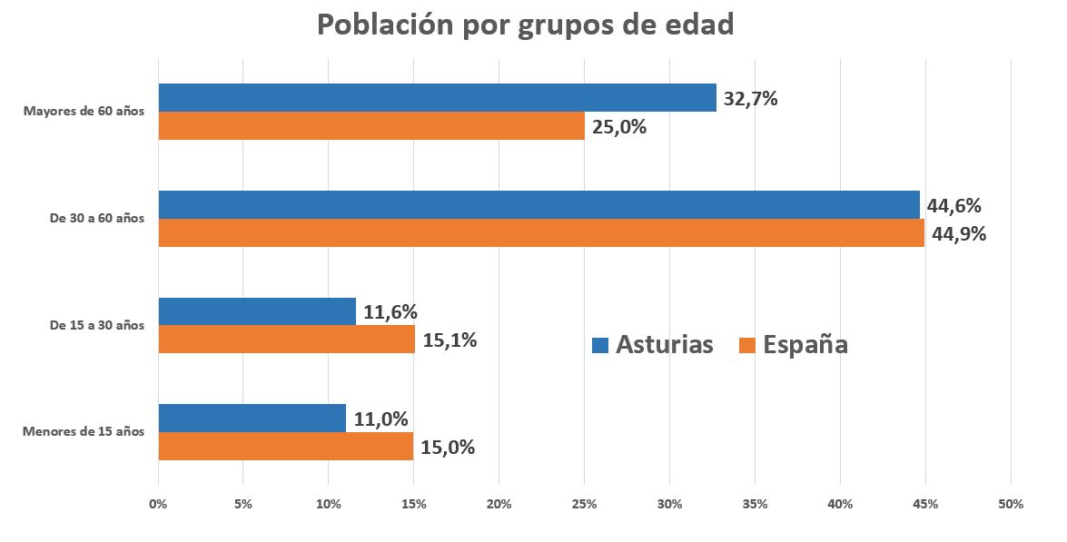 De hecho, según los datos del INE, Asturias es la región con una edad media más elevada, más de 48 años, casi uno más que la segunda Castilla y León (un año puede parecer una diferencia pequeña pero, para una estadística de este tipo, no lo es, ni mucho menos).