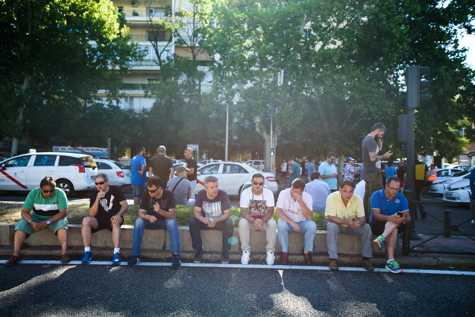 Las horas pasan despacio durante la segunda jornada de protestas en Madrid y los trabajadores del sector pasan el tiempo sentados o comentando con sus compañeros.