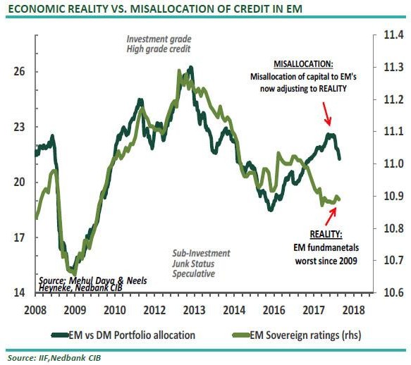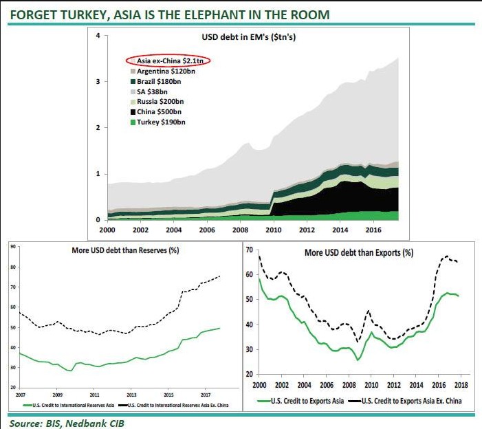 El volumen y la estructura de crédito presente en estos países debe amoldarse de algún modo a la realidad de sus fundamentales, es decir, a su verdadero nivel de solvencia. El problema de fondo, por tanto, no es tanto Turquía como el posible contagio a otras potencias emergentes.