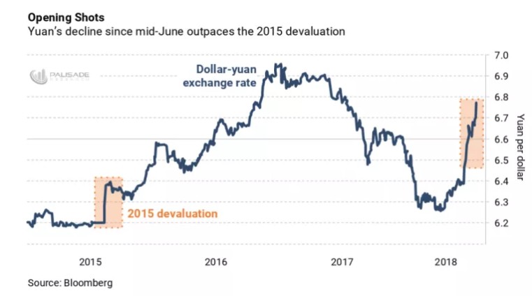 De hecho, China ya tuvo que aplicar una devaluación en 2015 y otra a principios de 2016, cuya decisión generó una gran incertidumbre en los mercados. La cuestión ahora es que el yuan está sufriendo una caída similar, tras acumular un retroceso próximo al 7% en los últimos tres meses, hasta el punto de tocar los mínimos de mediados de 2017.